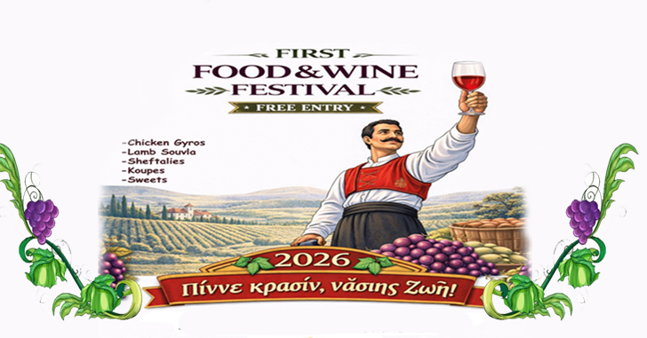 Η Κυπριακή Κοινότητα Βόρειων Προαστίων Μελβούρνης, σε συνεργασία με την Ελληνορθόδοξη Αρχιεπισκοπή Αυστραλίας και την ενορία Μεταμόρφωση του Σωτήρος – Thomastown, σας προσκαλεί στο Κυπριακό Φεστιβάλ Φαγητού & Κρασιού 2026!