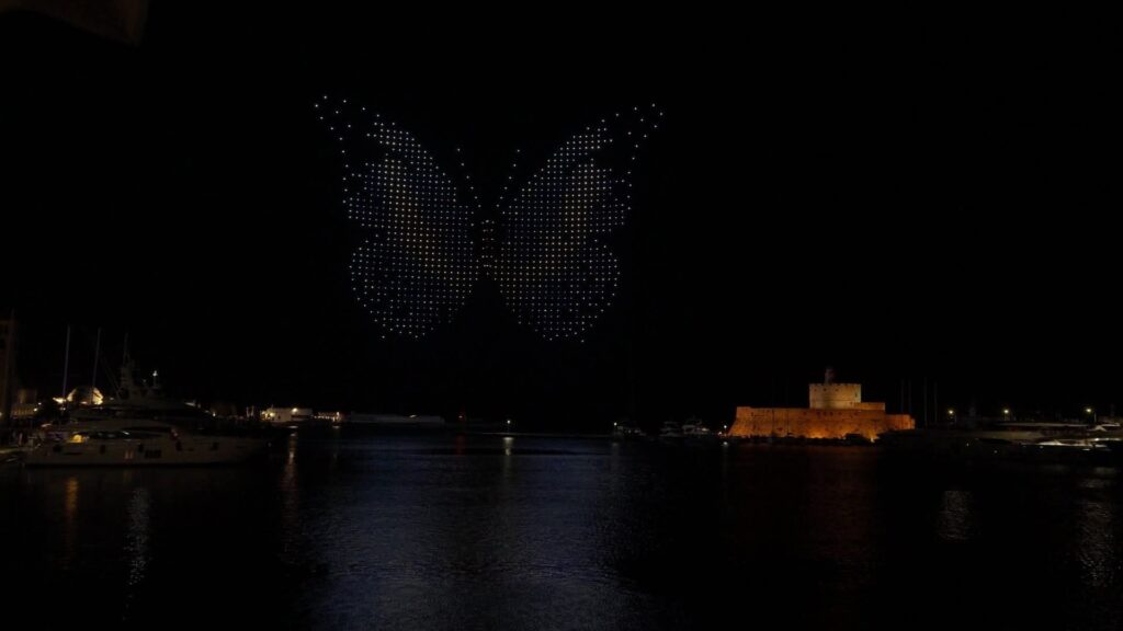 Η ελληνική start-up DRNS Drone Light Show, που ιδρύθηκε από δύο νέους Έλληνες, παρουσίασε στη Ρόδο το μεγαλύτερο drone show που έχει γίνει ποτέ στην Ελλάδα και σε ολόκληρη τη Νοτιοανατολική Ευρώπη.