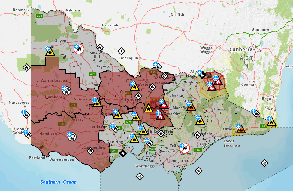 Οι καταστροφικές καιρικές συνθήκες σήμερα, συμπεριλαμβανομένων των ριπών ανέμου με ταχύτητα 90 χλμ./ώρα και των θερμοκρασιών που κυμαίνονται από 40+ βαθμούς Κελσίου, έχουν ανησυχήσει τις πυροσβεστικές αρχές και ολόκληρη την κοινότητα της Βικτώριας.