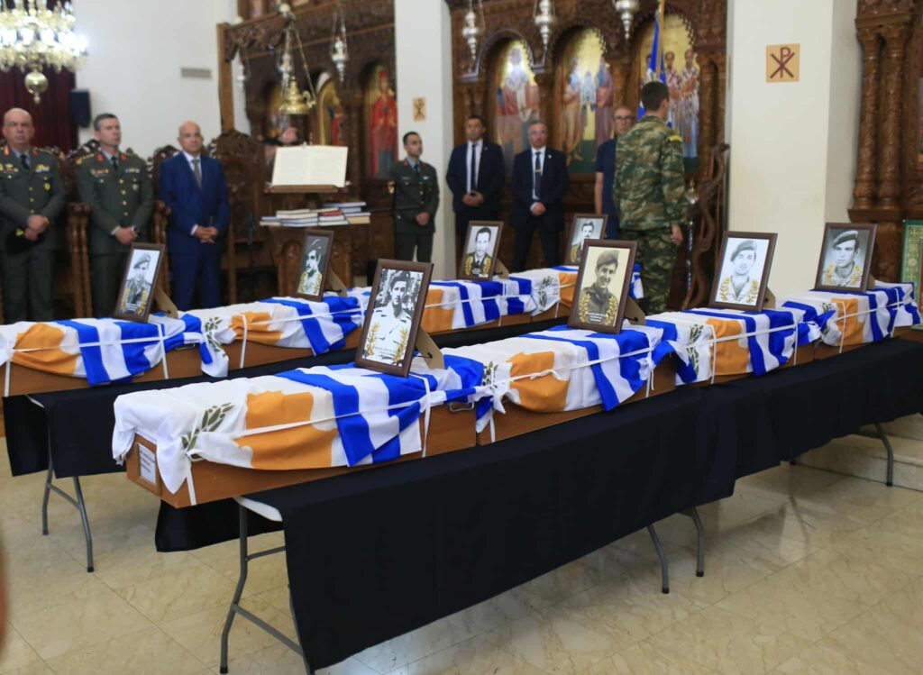 Με βαθιά συγκίνηση και υπερηφάνεια τελέστηκε σήμερα στον Ιερό Ναό της του Θεού Σοφίας Στροβόλου, ο επαναπατρισμός των οστών 16 Ελλαδιτών στρατιωτών της Ελληνικής Δύναμης Κύπρου (ΕΛΔΥΚ), που έπεσαν μαχόμενοι κατά την τουρκική εισβολή του 1974. Σε χαιρετισμό του, ο Πρόεδρος της Δημοκρατίας, Νίκος Χριστοδουλίδης, τόνισε τον αδιάσπαστο δεσμό Ελλάδας και Κύπρου, βασισμένο στο κοινό αίμα, τη γλώσσα, την πίστη και τον πολιτισμό.