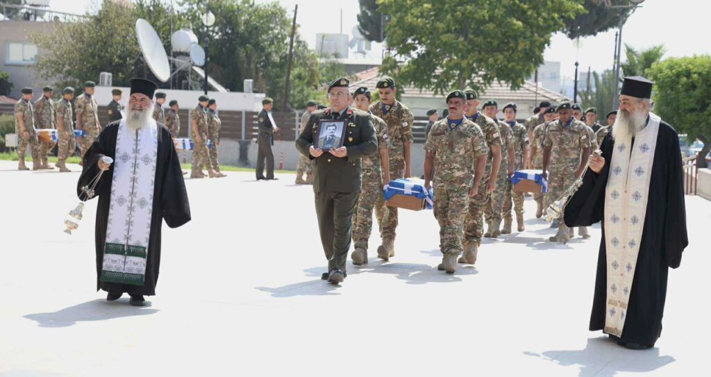 Με βαθιά συγκίνηση και υπερηφάνεια τελέστηκε σήμερα στον Ιερό Ναό της του Θεού Σοφίας Στροβόλου, ο επαναπατρισμός των οστών 16 Ελλαδιτών στρατιωτών της Ελληνικής Δύναμης Κύπρου (ΕΛΔΥΚ), που έπεσαν μαχόμενοι κατά την τουρκική εισβολή του 1974. Σε χαιρετισμό του, ο Πρόεδρος της Δημοκρατίας, Νίκος Χριστοδουλίδης, τόνισε τον αδιάσπαστο δεσμό Ελλάδας και Κύπρου, βασισμένο στο κοινό αίμα, τη γλώσσα, την πίστη και τον πολιτισμό.