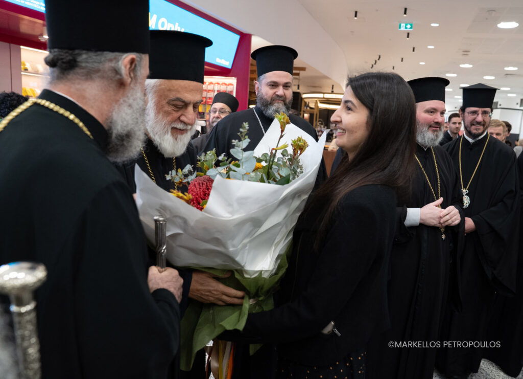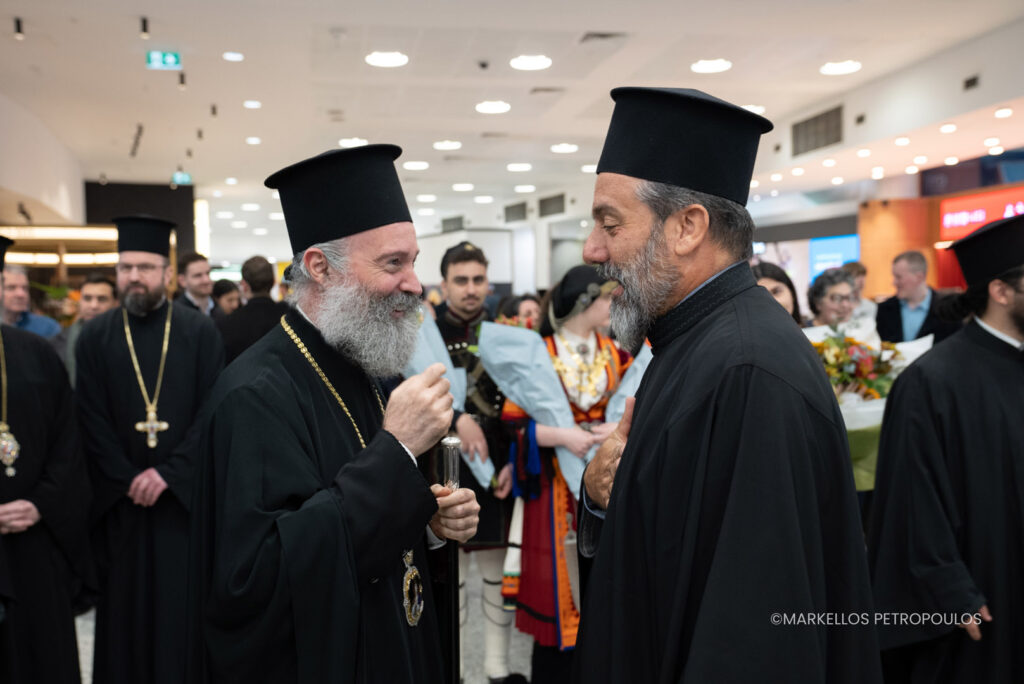 Άπαντες έτυχαν θερμής υποδοχής από τον Σεβασμιώτατο Αρχιεπίσκοπο Αυστραλίας κ. Μακάριο, περιστοιχούμενο από τα μέλη της Ιεράς Επαρχιακής Συνόδου: τους Θεοφιλεστάτους Επισκόπους Πέρθης κ. Ελπίδιο, Αδελαΐδος κ. Σιλουανό, Μελβούρνης κ. Κυριακό, Χώρας κ. Ευμένιο και Βρισβάνης κ. Βαρθολομαίο. Παρέστησαν, επίσης, οι Θεοφιλέστατοι Επίσκοποι Μιλητουπόλεως κ. Ιάκωβος και Μαγνησίας κ. Χριστόδουλος, οι Θεοφιλέστατοι εψηφισμένοι Επίσκοποι Καμπέρας κ. Αθηναγόρας και Κερασούντος κ. Χριστοφόρος, πλειάδα κληρικών, ο Γενικός Πρόξενος της Ελλάδος στο Σύδνεϋ κ. Γεώργιος Σκέμπερης, ο Διευθυντής του Ελληνικού Κέντρου Προνοίας κ. Στυλιανός Μαγδαλόπουλος και αντιπροσωπεία νέων του Λυκείου Ελληνίδων του Σύδνεϋ, η οποία καλωσόρισε τους αφιχθέντες προσφέροντάς τους λουλούδια, ως έκφραση αγάπης και σεβασμού.