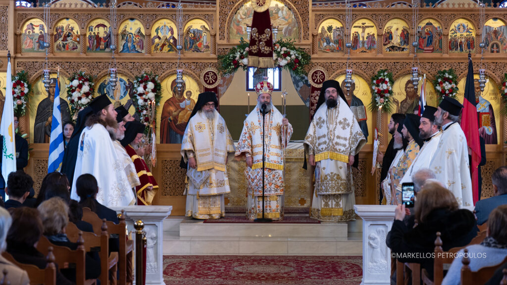 Στον πανηγυρίζοντα ομώνυμο Ιερό Ναό ιερούργησε, το πρωί της Τετάρτης, 6 Αυγούστου, ο Σεβασμιώτατος Αρχιεπίσκοπος Αυστραλίας κ.κ. Μακάριος, με συλλειτουργούς τον επιχώριο Επίσκοπο Χώρας κ. Ευμένιο, τον Επίσκοπο Μελβούρνης κ. Κυριακό και κληρικούς των Επισκοπών Χώρας και Μελβούρνης, συμπεριλαμβανομένου του Ιερατικώς Προϊσταμένου του Ι.Ν. Μεταμορφώσεως του Κυρίου, π. Γεωργίου Φράγκου.