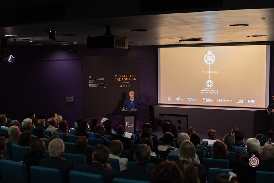Η επετειακή εκδήλωση ξεκίνησε με την προβολή οπτικοακουστικού αφιερώματος, καθώς και αντιπροσωπευτικού δείγματος των ιστοριών που έχουν καταγραφεί στο πλαίσιο του έργου «Our People, Their Stories». Ακολούθησαν οι ομιλίες του Σεβασμιωτάτου Αρχιεπισκόπου κ.κ. Μακαρίου και της Ελληνίδας Υπουργού κ. Μενδώνη. Ο Αρχιεπίσκοπος, παρουσιάζοντας το έργο, έκανε εκτενή αναφορά στους πρωταγωνιστές του, που είναι οι πρωτοπόροι μετανάστες, οι οποίοι αφηγούνται τις ιστορίες και τις περιπέτειες της ζωής τους. Χαιρέτισε δε την παρουσία ορισμένων εξ αυτών στην επετειακή εκδήλωση και τούς απηύθυνε λόγους ευγνωμοσύνης για την προσωπική συνεισφορά τους στην πρόοδο του Ελληνισμού της πέμπτης ηπείρου. Επίσης, εξέφρασε τη συγκίνησή του για το γεγονός ότι οι ιστορίες που έχει φέρει στο φως το «ζωντανό» Μουσείο», έχουν αγγίξει τις καρδιές του κοινού στην Αυστραλία, την Ελλάδα και ανά την υφήλιο, όπως επιβεβαιώνεται από τα 11 εκατομμύρια προβολές που έχουν ήδη συγκεντρώσει.