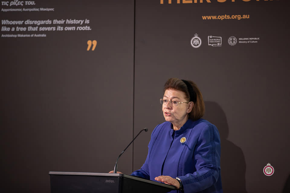 Από την πλευρά της, η Υπουργός κ. Μενδώνη εξέφρασε τον σεβασμό και τον θαυμασμό της για τους Έλληνες που ξενιτεύτηκαν κατά τα δύσκολα μεταπολεμικά χρόνια και εξήρε την πρωτοβουλία της Ιεράς Αρχιεπισκοπής Αυστραλίας για την καταγραφή των ιστοριών τους. «Το Ελληνικό Υπουργείο Πολιτισμού, αναγνωρίζοντας την αξία της πολιτιστικής μνήμης ως θεμέλιο της εθνικής μας ταυτότητας, αγκάλιασε θερμά αυτήν την προσπάθεια, θέτοντάς την υπό την αιγίδα του», τόνισε, μεταξύ άλλων, και επεσήμανε: «Δεσμευόμαστε ότι η αιγίδα αυτή δε θα είναι απλώς συμβολική, αλλά και ουσιαστική. Θα στηρίξουμε κάθε προσπάθεια που ενισχύει την πολιτιστική ταυτότητα του Ελληνισμού της Διασποράς, κάθε προσπάθεια που προάγει την εξωστρέφεια του ελληνικού πολιτισμού. Το “Our People Their Stories” αποτελεί πρότυπο τέτοιας προσπάθειας και είμαστε πεπεισμένοι ότι θα αποτελέσει σημείο αναφοράς για την ελληνική πολιτιστική παρουσία στην Αυστραλία και διεθνώς».