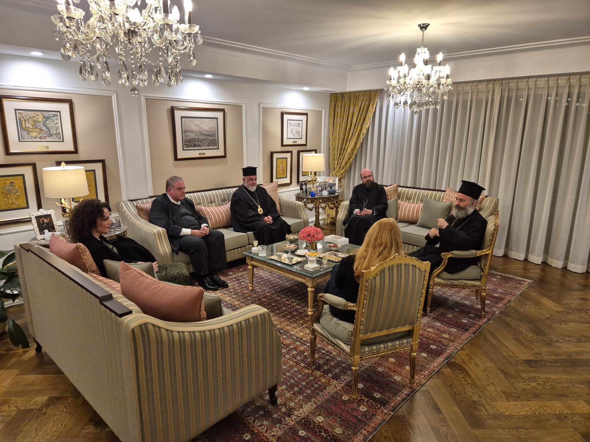 Ο Σεβασμιώτατος παρέθεσε Δείπνο προς τιμήν της Αυστραλής διπλωμάτη, στο οποίο παρακάθησαν επίσης ο Θεοφιλέστατος Επίσκοπος Μιλητουπόλεως κ. Ιάκωβος, ο Πρωτοσύγκελλος της Ιεράς Αρχιεπισκοπής, Πανοσιολογιώτατος Αρχιμανδρίτης του Οικουμενικού Θρόνου κ. Χριστοφόρος Κρικέλης, ο Αρχιδιάκονος κ. Αθηναγόρας και ο Αναπληρωτής Κοσμήτωρ της Θεολογικής Σχολής του Αποστόλου Ανδρέου, Δρ Φίλιππος Καριατλής, μετά της συζύγου του.