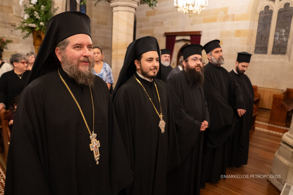 Συγκεκριμένα, στην Ακολουθία παρέστησαν ο εκπρόσωπος του Οικουμενικού Πατριάρχου στην επικείμενη Β’ Παναυστραλιανή Ιερατική Σύναξη, Σεβασμιώτατος Μητροπολίτης Μιλήτου κ. Απόστολος, Ηγούμενος της εν Χαλκιδική Ιεράς Πατριαρχικής και Σταυροπηγιακής Μονής Αγίας Αναστασίας της Φαρμακολυτρίας, οι φιλοξενούμενοι, με αφορμή τη Σύναξη, Σεβασμιώτατοι Μητροπολίτες Δημητριάδος και Αλμυρού κ. Ιγνάτιος, Καμερούν κ. Γρηγόριος, Νέας Κρήνης και Καλαμαριάς κ. Ιουστίνος, Νέας Ζηλανδίας κ. Μύρων και Αιτωλίας και Ακαρνανίας κ. Δαμασκηνός, οι Θεοφιλέστατοι Επίσκοποι – μέλη της Ιεράς Επαρχιακής Συνόδου της Αρχιεπισκοπής Αυστραλίας: Πέρθης κ. Ελπίδιος, Αδελαΐδος κ. Σιλουανός, Μελβούρνης κ. Κυριακός, Χώρας κ. Ευμένιος και Βρισβάνης κ. Βαρθολομαίος, οι Θεοφιλέστατοι Επίσκοποι Μιλητουπόλεως κ. Ιάκωβος και Μαγνησίας κ. Χριστόδουλος, ο Πανοσιολογιώτατος Αρχιμανδρίτης κ. Ιγνάτιος Μουρτζανός, Πρωτοσύγκελλος της Ιεράς Μητροπόλεως Λαρίσης και Τυρνάβου, ο Οσιολογιώτατος Ιερομόναχος κ. Χρυσόστομος, Γέρων του Κελλίου του Αγίου Ιωάννου του Χρυσοστόμου, της Κουτλουμουσιανής Σκήτης στο Άγιον Όρος, ο Ιερολογιώτατος κ. Φώτιος Πουλόπουλος, Πατριαρχικός Διάκονος, ο Ιερός Κλήρος της εν Αυστραλία Ορθοδόξου Εκκλησίας, εκπρόσωποι Οργανισμών, Ιδρυμάτων και Σχολείων, και πλήθος πιστών.