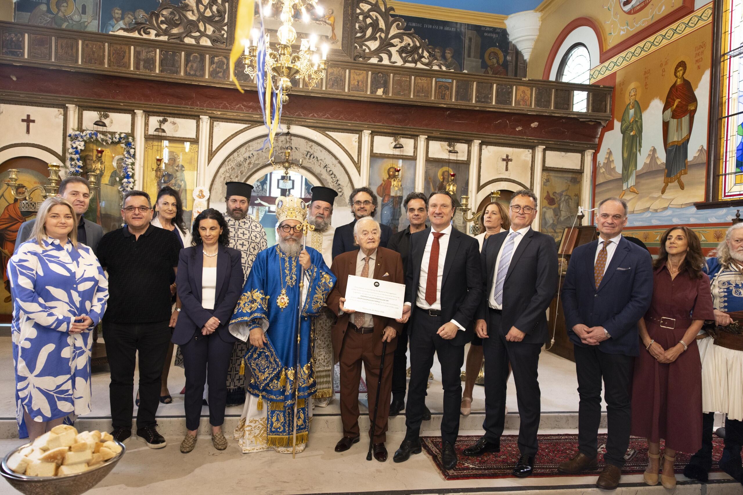 Ως ένδειξη ευγνωμοσύνης προς τον κ. Ανδρέα Ανδριανόπουλο και την οικογένειά του, τοποθετήθηκε σε παρακείμενο χώρο του Ναού ειδική τιμητική αναμνηστική πλακέτα, επισφραγίζοντας τη διαχρονική συμβολή τους στην ενίσχυση της ελληνορθόδοξης παρουσίας στη Μελβούρνη και αναγνωρίζοντας τη σημαντική συμβολή του Ανδρέα Ανδριανόπουλου, η οποία επέτρεψε την πραγματοποίηση εργασιών αποκατάστασης στην ιστορική εκκλησία.