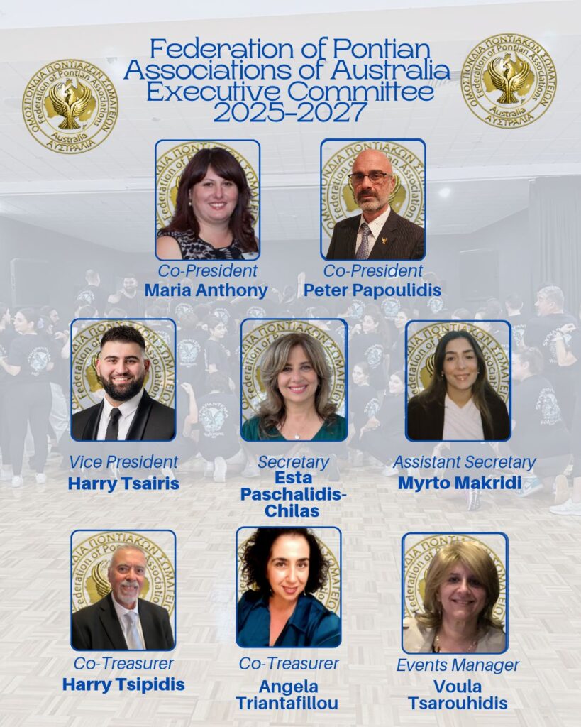 Ομογένεια Η νέα Εκτελεστική Επιτροπή της Ομοσπονδίας Ποντιακών Συλλόγων Αυστραλίας για το 2025-2027 by Omogeneia Team 4 Σεπτεμβρίου, 2025 από Omogeneia Team 4 Σεπτεμβρίου, 2025 0 comment 59 Τη νέα εκτελεστική επιτροπή για το 2025 -2027 ανακοίνωσε η Ομοσπονδία Ποντιακών Συλλόγων Αυστραλίας Maria Anthony – Co-President Peter Papoulidis – Co-President Harry Tsairis – Vice President Esta Paschalidis-Chilas – Secretary Myrto Makridi – Assistant Secretary Harry Tsipidis – Co-Treasurer Angela Triantafillou – Co-Treasurer Voula Tsarouhidis – Event Manager featured Share 0 FacebookTwitterPinterestEmail Omogeneia Team Προηγούμενο Εθνικό πένθος στην Πορτογαλία: Εκτροχιάστηκε το ιστορικό τελεφερίκ της Λισαβόνας, με 15 νεκρούς και δεκάδες τραυματίες Επόμενο Κυπριακή Κοινότητα Βορείων Προαστείων Μελβούρνης – Βραδιά Ταβέρνας ΔΕΙΤΕ ΕΠΙΣΗΣ ΧΡΕΙΑΖΕΤΑΙ ΤΗ ΒΟΗΘΕΙΑ ΟΛΩΝ ΜΑΣ 3 Δεκεμβρίου, 2025 Και πάλι αντιμέτωπος με τη δικαιοσύνη ο Άντριου Τριαντάφυλλος-κατηγορείται για φερόμενη απάτη ύψους 1... 3 Δεκεμβρίου, 2025 Οι μαθητές των σχολείων της Ελληνικής Κοινότητας Μελβούρνης τίμησαν τους δύο μεγάλους συνθέτες Μίκη... 3 Δεκεμβρίου, 2025 Το Κύπελλο της Ελληνικής Κοινότητας καθορίζει τους φιναλίστ μετά τους ημιτελικούς στο Mill Park 1 Δεκεμβρίου, 2025 Ι. Επισκοπή Χώρας: Πανηγυρικός εορτασμός του Αγίου Ανδρέου στην Κοινότητα Sunshine West 1 Δεκεμβρίου, 2025 Χριστουγεννιάτικη εκδήλωση του Ελληνικού Σχολείου της Παναγίας Καμαριανής Red Hill 27 Νοεμβρίου, 2025