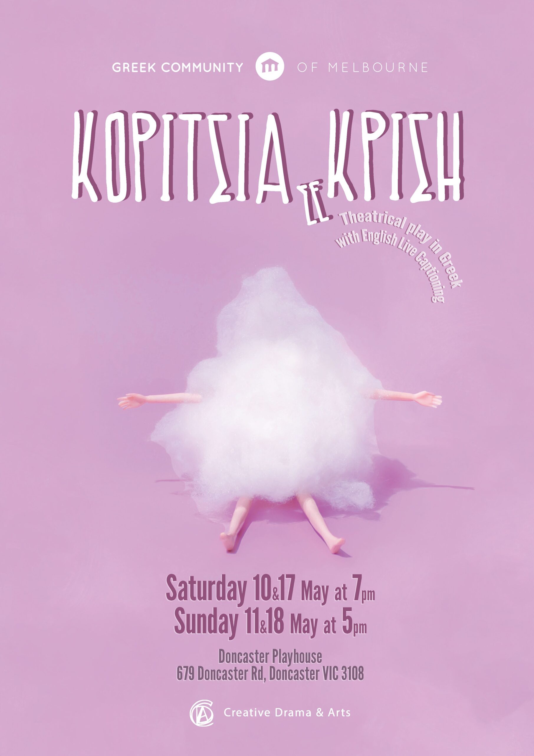 Μετά την επιτυχία της παράστασης «Κορίτσια στον Ίσκιο», το Δημιουργικό Κέντρο Δράματος & Τεχνών της Ελληνικής Κοινότητας Μελβούρνης (ΕΚΜ) επιστρέφει δυναμικά στα καλλιτεχνικά δρώμενα της Μελβούρνης, με την ευρηματική κωμωδία «Κορίτσια σε Κρίση», σε σκηνοθεσία Τζέρεμυ Άρτι, για τέσσερις μοναδικές βραδιές στο Doncaster Play House, στις 10, 11, 17 και 18 Μαΐου.