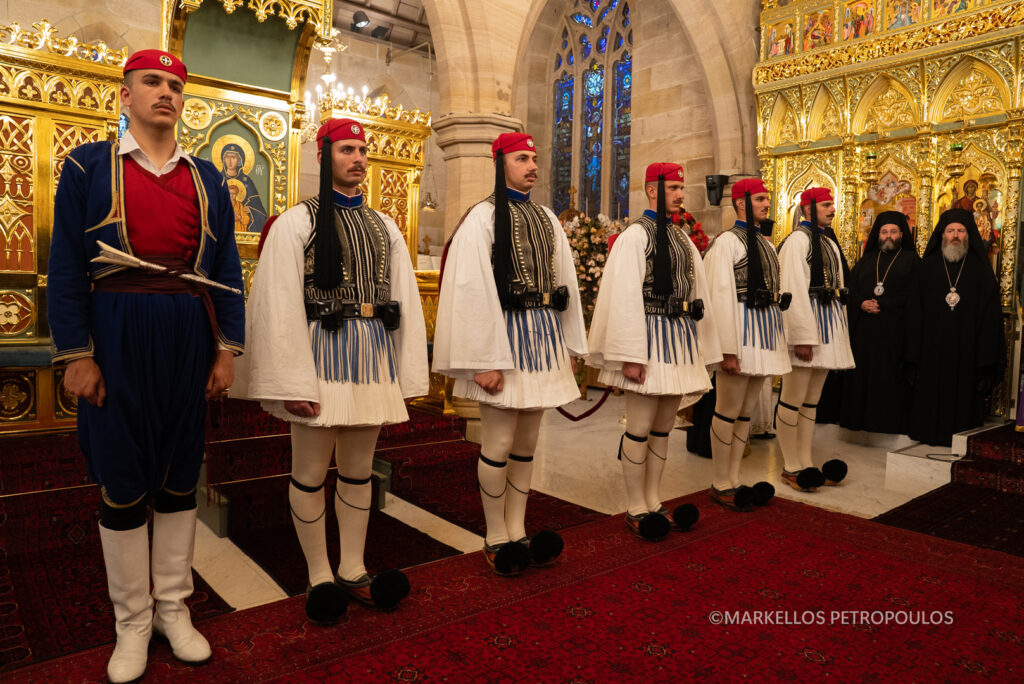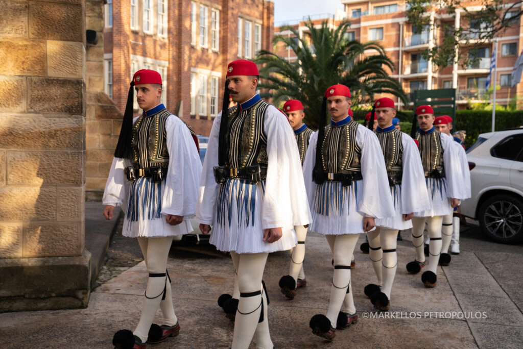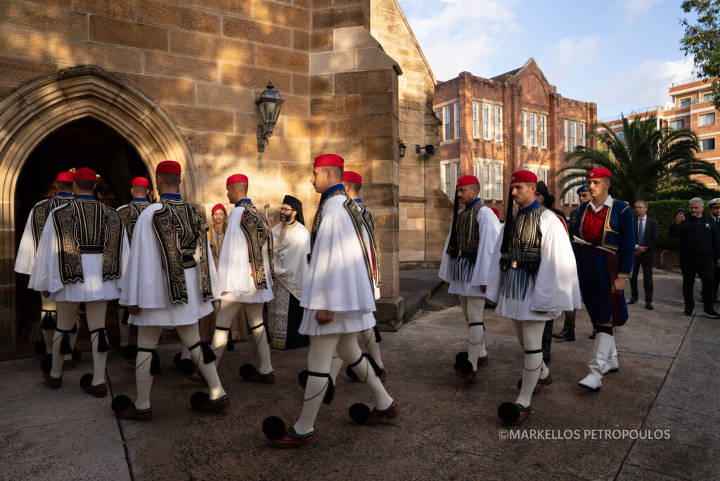 Η υποδοχή των μελών του υψίστου τιμητικού αγήματος της Ελλάδος, γνωστών ως Ευζώνων, πραγματοποιήθηκε στον Ιερό Καθεδρικό Ναό του Ευαγγελισμού της Θεοτόκου. Παρουσία του Πρωθυπουργού της Νέας Νοτίου Ουαλίας κ. Chris Minns, καθώς και του Γενικού Προξένου της Ελλάδος στο Σύδνεϋ κ. Ιωάννη Μαλλικούρτη, τελέστηκε επίσημη Δοξολογία υπό του Σεβασμιωτάτου Αρχιεπισκόπου κ.κ. Μακαρίου, περιστοιχουμένου υπό των Θεοφιλεστάτων Επισκόπων Πέρθης κ. Ελπιδίου, Μελβούρνης κ. Κυριακού, Βρισβάνης κ. Βαρθολομαίου, Μιιλητουπόλεως κ. Ιακώβου και Μαγνησίας κ. Χριστοδούλου, Αρχιγραμματέως της Ιεράς Επαρχιακής Συνόδου της Ιεράς Αρχιεπισκοπής.