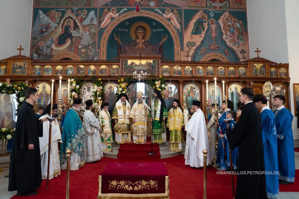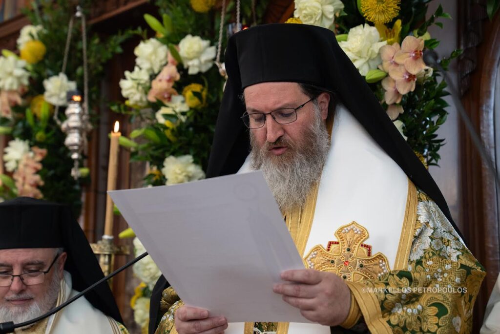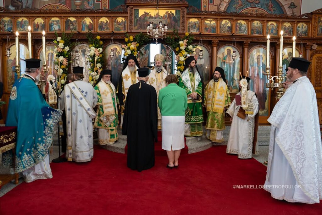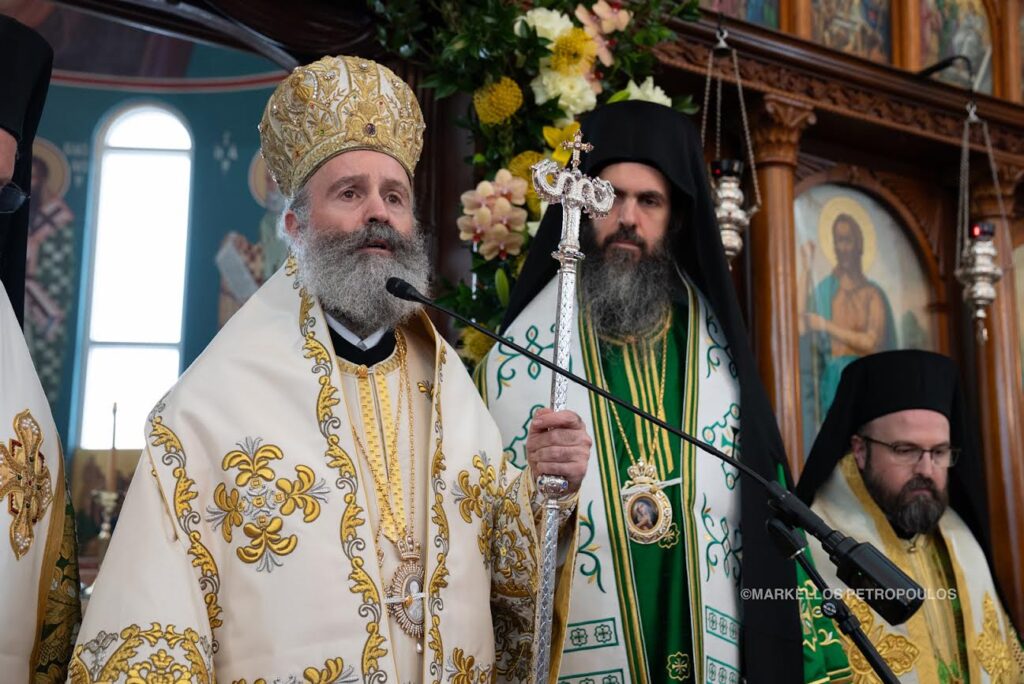 Με τον Αρχιεπίσκοπο συλλειτούργησαν οι Θεοφιλέστατοι Χωρεπίσκοποι Πέρθης κ. Ελπίδιος και Καμπερας κ. Αθηναγόρας, και οι Θεοφιλέστατοι βοηθοί Επίσκοποι Μιλητουπόλεως κ. Ιάκωβος, Ηγούμενος της Ιεράς Μονής Αγίου Γεωργίου Yellow Rock, και Κερασούντος κ. Χριστοφόρος, Πρωτοσύγκελλος της Ιεράς Αρχιεπισκοπής. Τον θείο λόγο κήρυξε, κατόπιν παρακλήσεως του Σεβασμιωτάτου, ο Θεοφιλέστατος Επίσκοπος Πέρθης κ. Ελπίδιος.