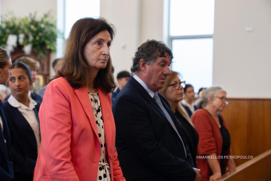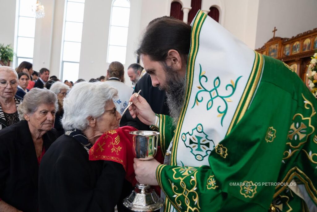 Μετά την απόλυση της Θείας Λειτουργίας, το ιερατικό ζεύγος που στέκεται ως «στυλοβάτης» της Ενορίας του Kingsford εδώ και μισό αιώνα, δέχθηκε συγχαρητήριες ευχές από τους Θεοφιλεστάτους Επισκόπους, τους κληρικούς και τους πιστούς που εκκλησιάστηκαν, μεταξύ των οποίων ήταν ο Πρόεδρος της Ενορίας κ. Ηλίας Οικονόμου και μαθητές και μαθήτριες του Κολλεγίου του Αγίου Σπυρίδωνος.