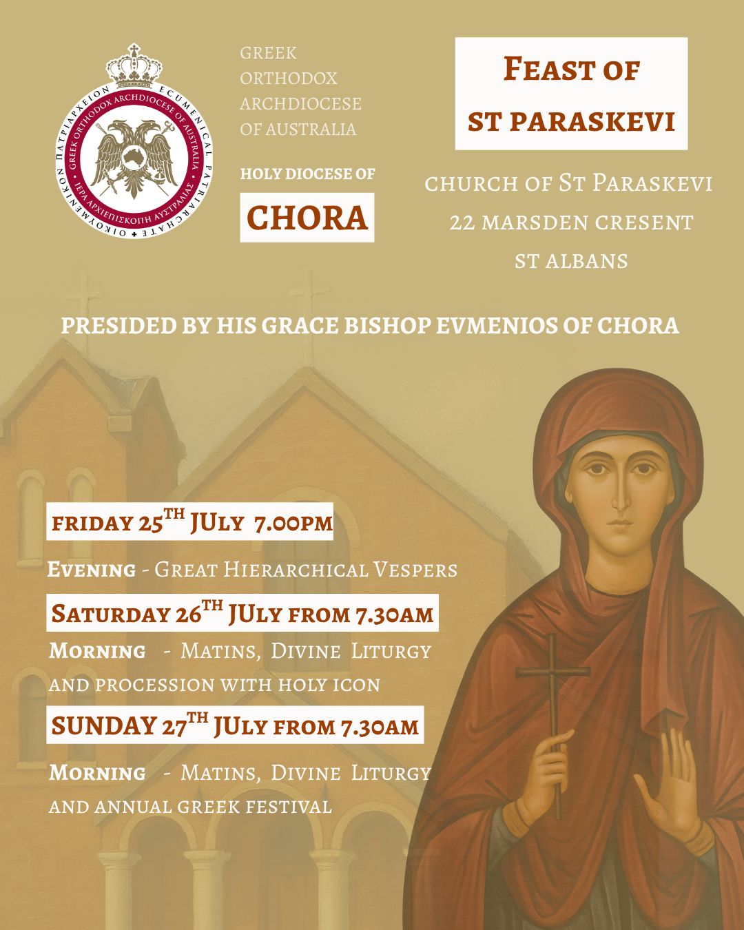 We warmly invite everyone to join us in these sacred services and festivities, honouring our beloved Saint Paraskevi. May St Paraskevi intercede for all of us!
