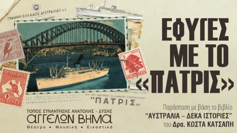 Στις 14 Δεκεμβρίου 1959, το θρυλικό πλοίο «Πατρίς» του Οίκου Χανδρή ένωσε για πρώτη φορά την Ελλάδα με την Αυστραλία. Είχε πλήρωμα 250 ατόμων και 1.000 επιβάτες Έλληνες οι οποίοι αποζητούσαν μια ευκαιρία καλύτερης ζωής σε έναν μακρινό τόπο. Επτά δεκαετίες αργότερα, στις 11 Ιανουαρίου, ανοίγει και πάλι πανιά, αυτή τη φορά από το θέατρο «Αγγέλων Βήμα», με μια παράσταση καταγραφής, μνήμης και σεβασμού, ένα αφιέρωμα καρδιάς στον Ελληνισμό της Αυστραλίας της δεκαετίας του ‘60 υπό τον τίτλο «‘Εφυγες με το Πατρίς».