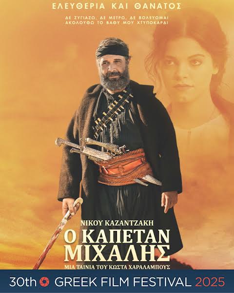 Το Φεστιβάλ Ελληνικού Κινηματογράφου, που φέτος γιορτάζει την 30ή του επέτειο και θα πραγματοποιηθεί από τις 14 έως τις 26 Οκτωβρίου, ανοίγει αυλαία με το δυνατό ιστορικό δράμα Καπετάν Μιχάλης. Σε σκηνοθεσία Κώστα Χαραλάμπους, η ταινία διαδραματίζεται στα τέλη του 19ου αιώνα στην Κρήτη και βασίζεται στο ομώνυμο best seller του θρύλου της λογοτεχνίας, Νίκου Καζαντζάκη.
