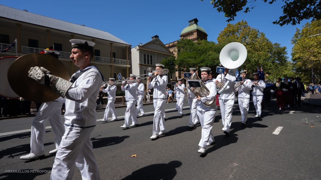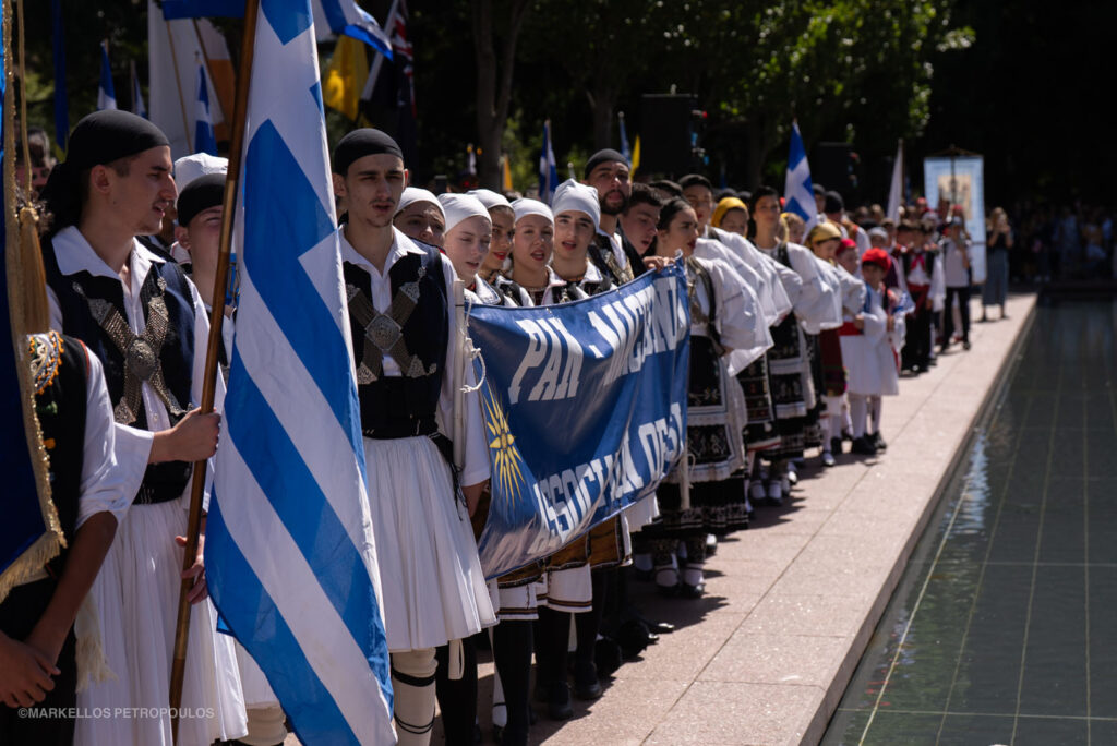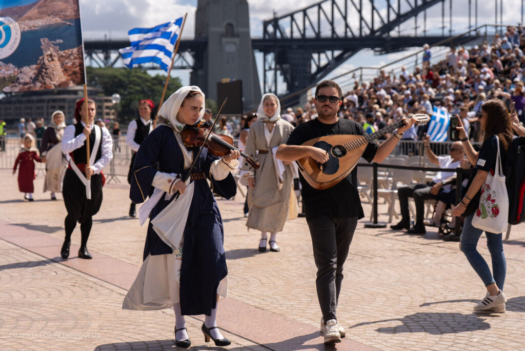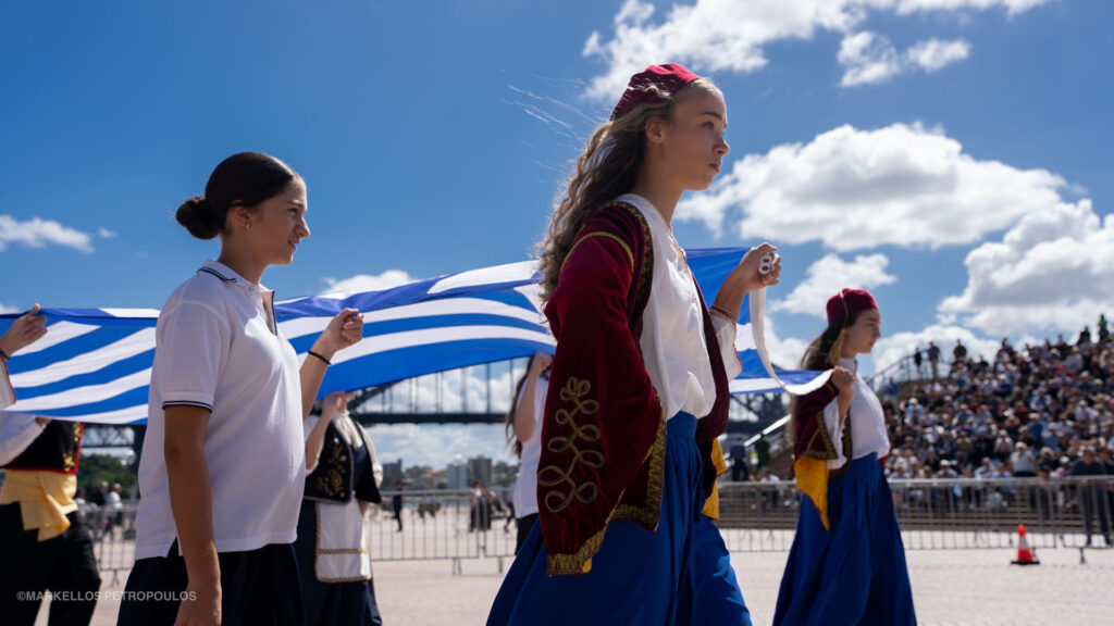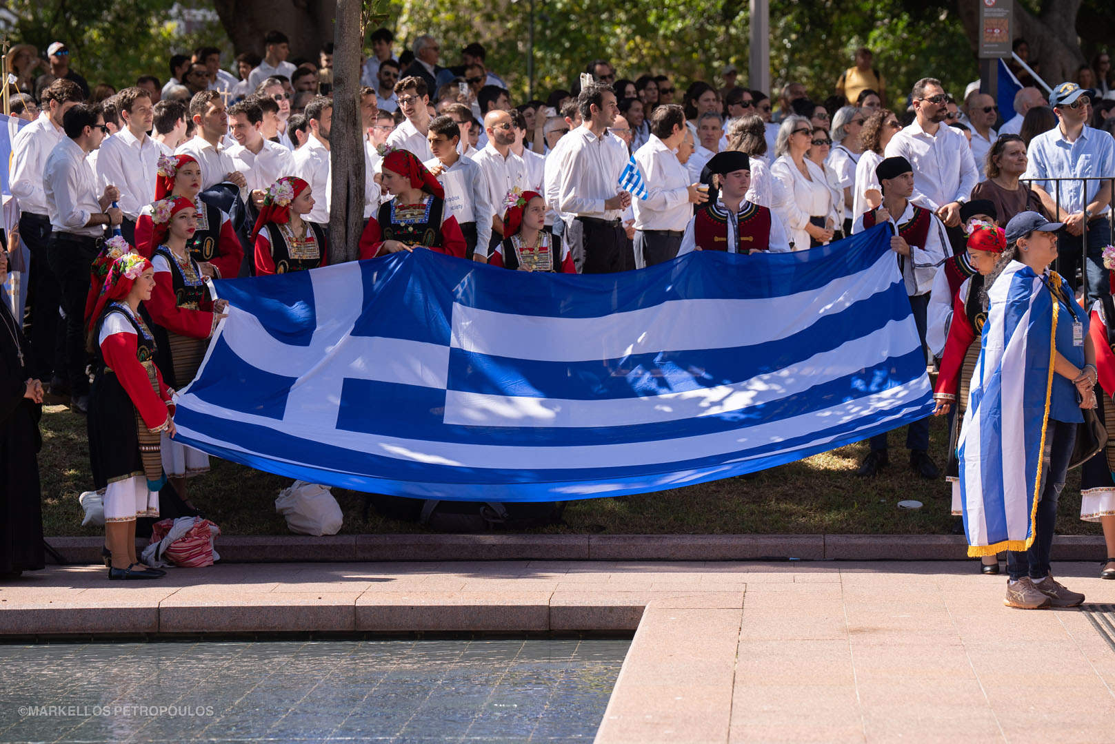 Περατωθείσης της τελετής στο ANZAC Memorial, ένα «γαλανόλευκο ποτάμι» κινήθηκε προς την εμβληματική Όπερα του Σύδνεϋ, διασχίζοντας κεντρικές οδούς της πόλεως. Συμμετείχαν χιλιάδες ομογενείς, στην πλειονότητά τους νέοι και νέες, οι οποίοι ύψωσαν με υπερηφάνεια ελληνικές σημαίες και λάβαρα εθνικοτοπικών συλλόγων και οργανώσεων, ενώ ήταν ενδεδυμένοι με παραδοσιακές ελληνικές φορεσιές.