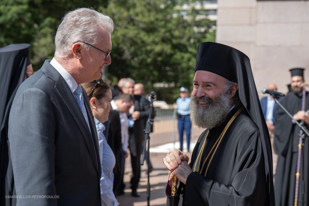 Στην τελετή παρέστησαν οι Θεοφιλέστατοι Επίσκοποι Μαγνησίας κ. Χριστόδουλος, Αρχιγραμματεύς της Ιεράς Επαρχιακής Συνόδου της Αρχιεπισκοπής Αυστραλίας, και Κερασούντος κ. Χριστοφόρος, Πρωτοσύγκελλος της Αρχιεπισκοπής, ο Πρέσβης της Ελλάδος στην Αυστραλία κ. Σταύρος Βενιζέλος, ο Ύπατος Αρμοστής της Κυπριακής Δημοκρατίας στην Αυστραλία κ. Αντώνιος Σαμμούτης, ο Γενικός Πρόξενος της Ελλάδος στο Σύδνεϋ κ. Γεώργιος Σκέμπερης, ο Υπουργός Εσωτερικών της Αυστραλίας κ. Tony Burke, η Πολιτειακή Υπουργός Εργασιακών Σχέσεων και Υγείας & Ασφάλειας στην Εργασία, κ. Σοφία Κώτση, ως εκπρόσωπος του Πρωθυπουργού της Νέας Νοτίου Ουαλίας κ. Chris Minns, η Πολιτειακή Βουλευτής ΝΝΟ κ. Ελένη Πετεινού, ο Πρόεδρος της Ελληνικής Ορθόδοξης Κοινότητας ΝΝΟ κ. Κωνσταντίνος Αποΐφης, κ.ά.
