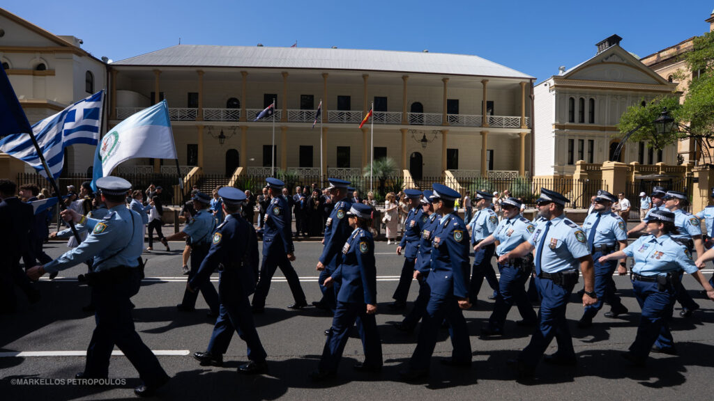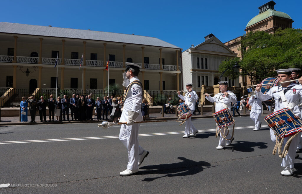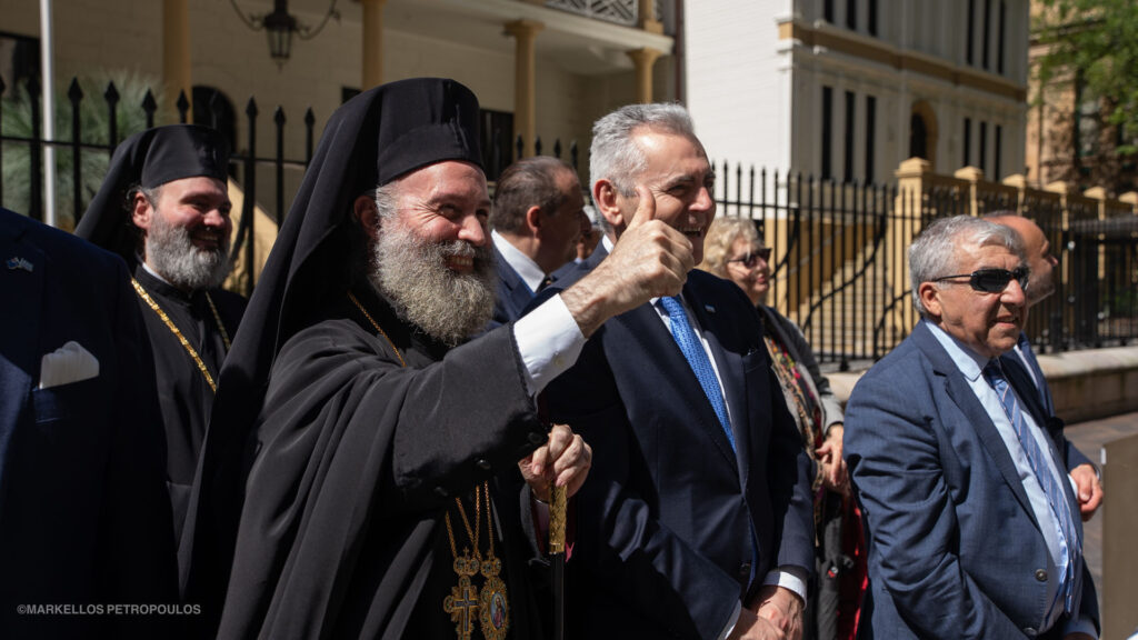 Επί της οδού Macquarie Street, μπροστά από το Κοινοβούλιο της Νέας Νοτίου Ουαλίας, ο Αρχιεπίσκοπος κ.κ. Μακάριος, οι Βουλευτές και οι λοιποί επίσημοι δέχθηκαν τον χαιρετισμό της παρελάσεως, καμαρώνοντας και χειροκροτώντας με ενθουσιασμό τους συμμετέχοντες.