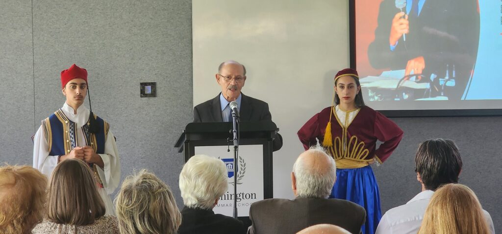 Την εκδήλωση άνοιξε με χαιρετισμό η διευθύντρια του Alphington Grammar, Dr. Vivianne Nikou, καλωσορίζοντας τους προσκεκλημένους και ακολούθησε χαιρετισμός εκ μέρους του ΑΙΜΣ, από την καθηγήτρια Δήμητρα Φλέσσα, μέλος του πολιτιστικού του ΑΙΜΣ. Ακολούθως, χαιρέτησε την ομήγυρη ο Πρόεδρος της Ελληνικής Κοινότητας Μελβούρνης και Βικτωρίας, κ. Βασίλειος Παπαστεργιάδης, ΟΑΜ ο οποίος ενθουσίασε το πολυπληθές ακροατήριό του, συγκρίνοντας το οδοιπορικό της κ. Λιβεριάδη με αυτό της μητέρας του η οποία επίσης έφθασε στην Αυστραλία την ίδια χρονιά με αυτή το 1959. Ο Πρόεδρος της Κοινότητας συγκινημένος αναφέρθηκε στα δύσκολα πρώτα χρόνια της εποίκησης των Ελλήνων μεταναστών, αναφέρθηκε στα επιτεύγματα και στην επιμονή της κ. Λιβεριάδη να ξεπεράσει τα προβλήματα γλώσσας και διαπρέψει επαγγελματικά, αφιερώνοντας μεγάλο χρόνο της ζωής της στα κοινά ως εθελόντρια και ευεργέτης.