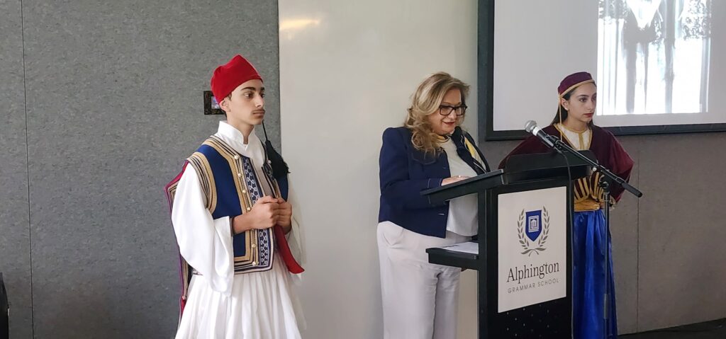 Συγκίνηση προκάλεσε στους παρευρισκόμενους η παρουσία εκατέρωθεν του βήματος όπου γίνονταν οι ομιλίες δύο νεαρών παιδιών, μίας Αμαλίας και ενός Εύζωνα, των αδελφών Μαρίας και Σωτηρίου Σωτηρίου, οι οποίοι με τη σοβαρότητα και το σεμνό του ύφος, αντιπροσώπευαν το μέλλον του Ελληνικού κόσμου στη Διασπορά.
