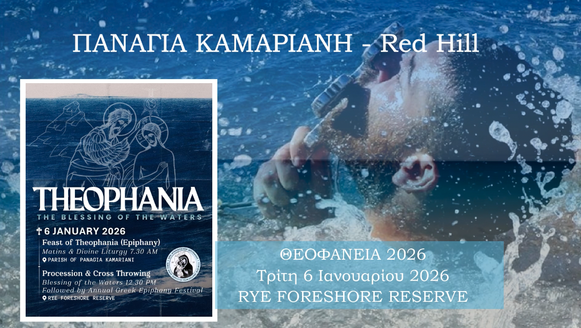 Με την ευλογία του Σεβασμιωτάτου Αρχιεπισκόπου Αυστραλίας κ.κ Μακαρίου, η Ενορία Παναγία Καμαριανή Red Hill, σας προσκαλεί στους πολυαναμενόμενους εορτασμούς των Θεοφανείων στο RYE για να γιορτάσουμε τη Βάπτιση του Κυρίου ημών Ιησού Χριστού.